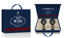 東方韻小 酒版禮盒(包裝盒) | 230g白卡紙包2.5mm中纖板,覆亞膜,燙銀,凹凸,內泡沫+植毛絨,深藍三股扭繩 尺寸:250*180*78mm | 5000個 |